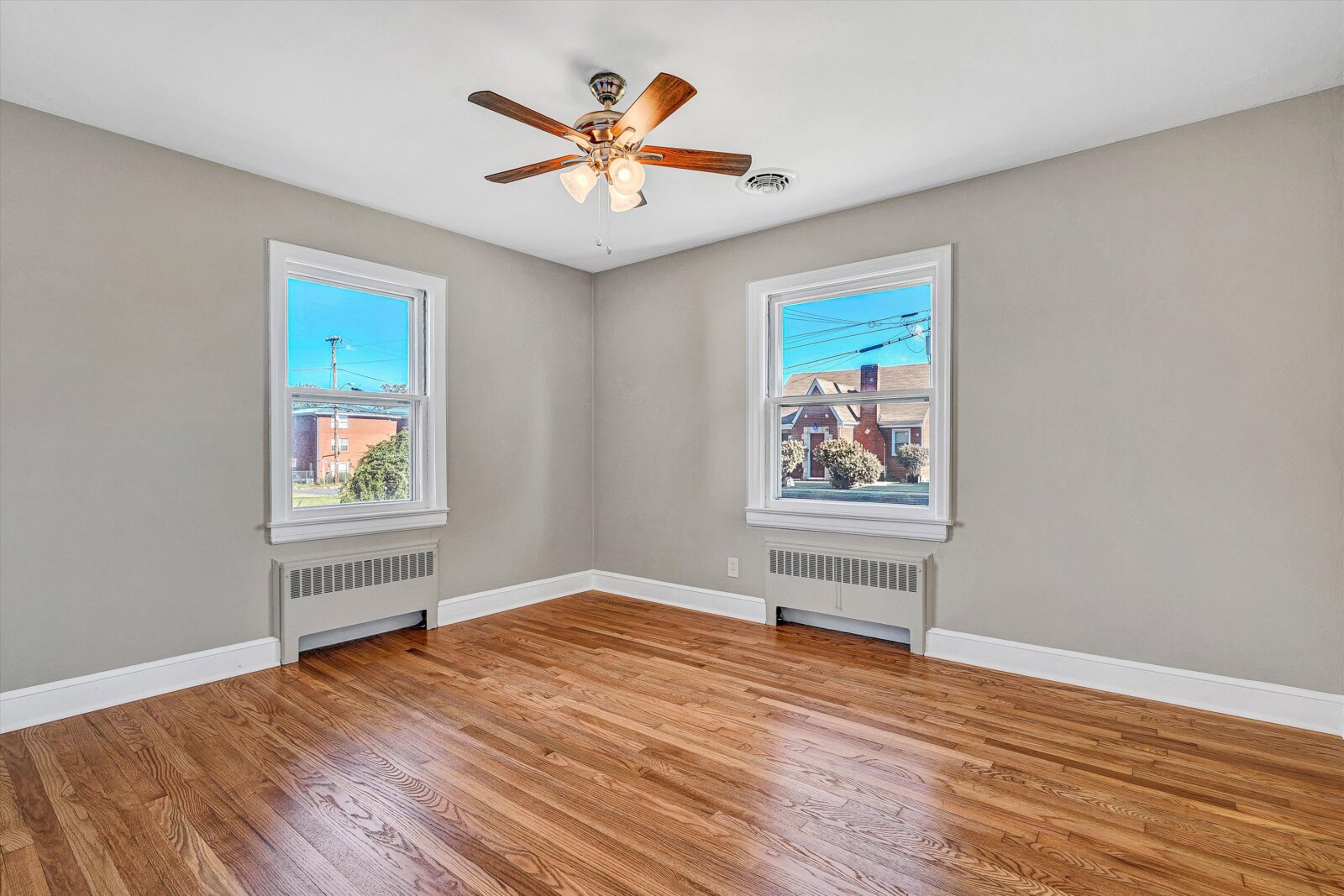 - Two spacious bedrooms with refinished hardwoods, ceiling fans/lights, ample closets